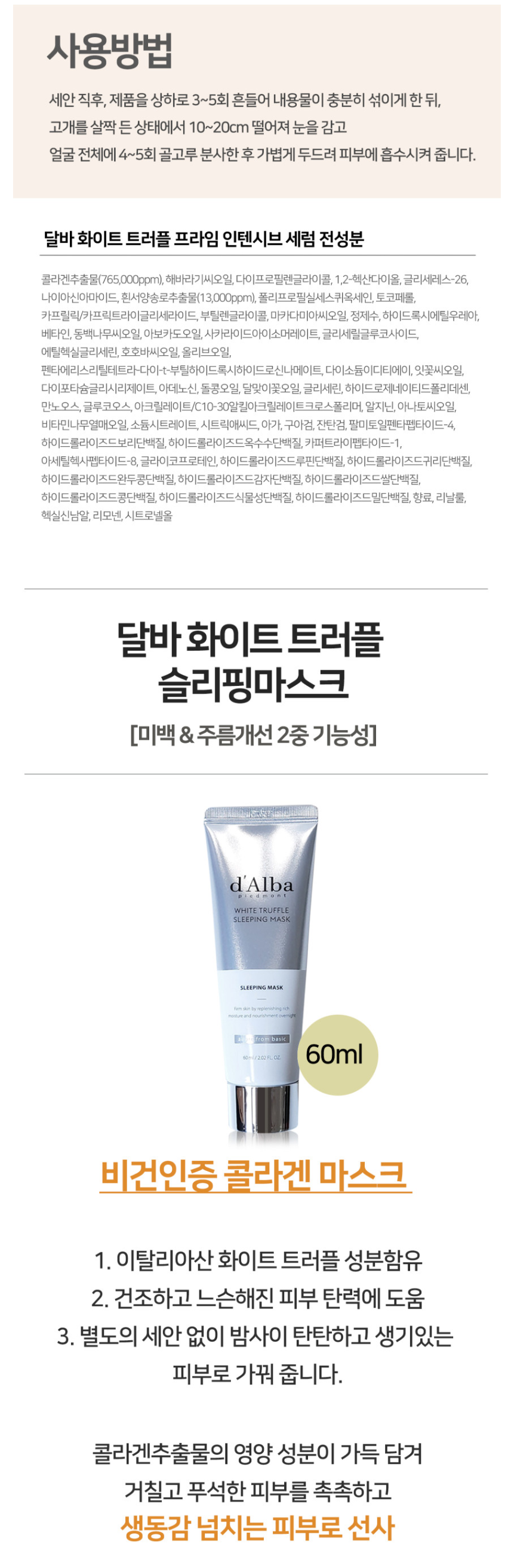 [´Þ¹Ù] d'Alba ÈÀÌÆ® Æ®·¯Çà ·Î¾â ÀÎÅÙ½Ãºê ¼¼·³100ml+½½¸®Çθ¶½ºÅ©60ml ¼¼Æ®