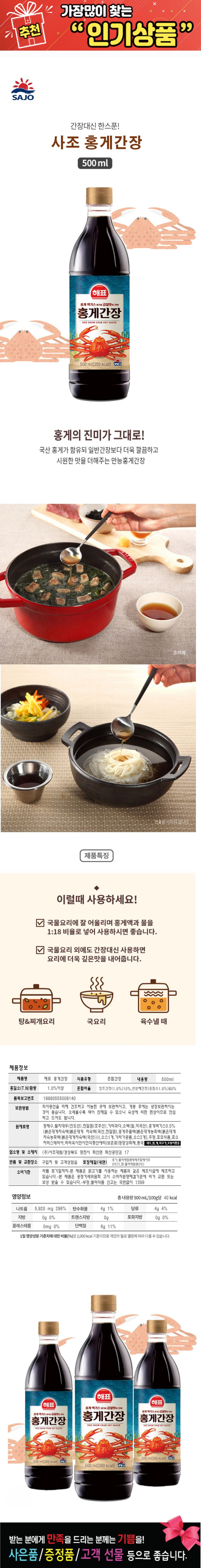 [»çÁ¶] ÇØÇ¥ È«°Ô°£Àå 500ml 1P