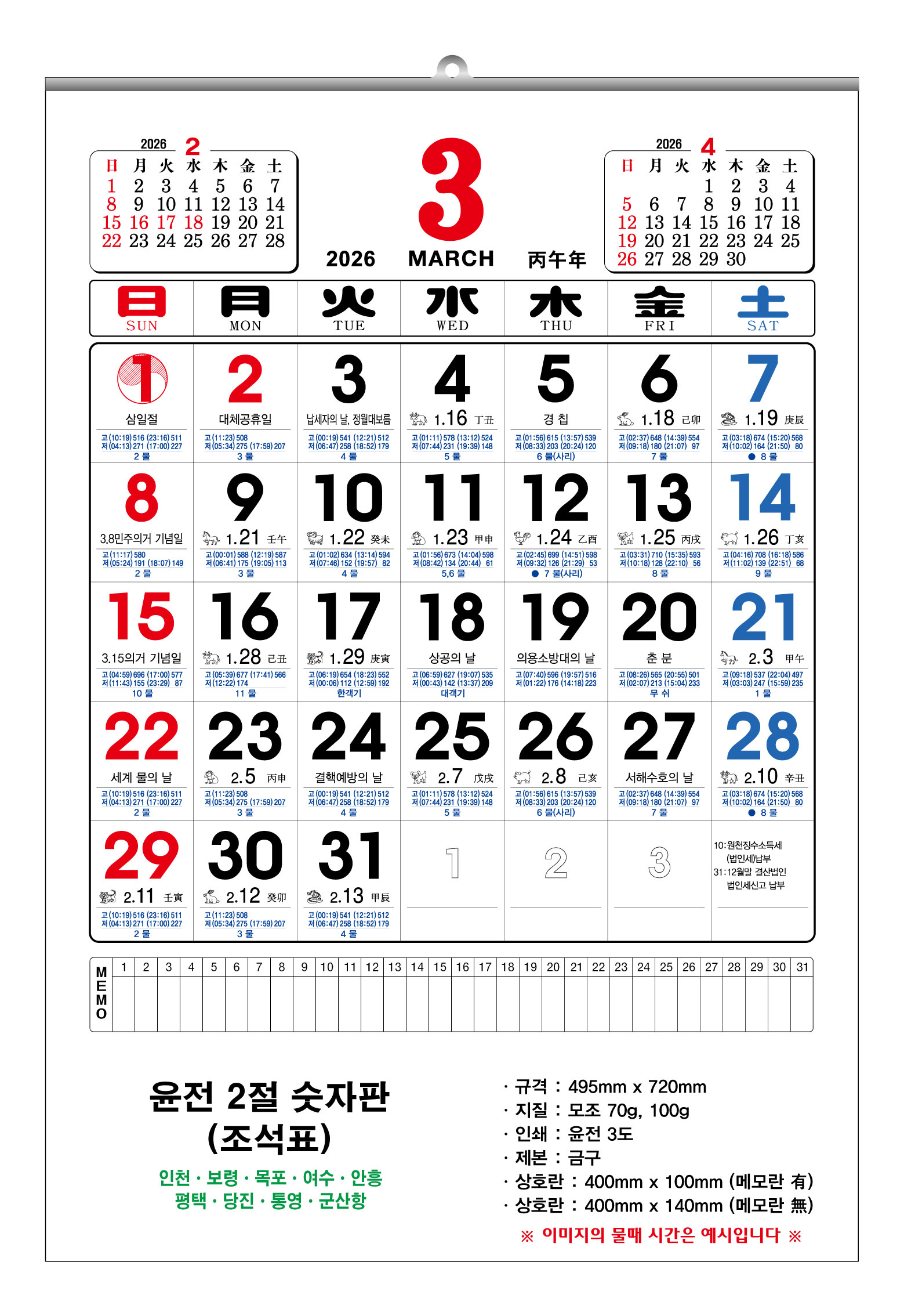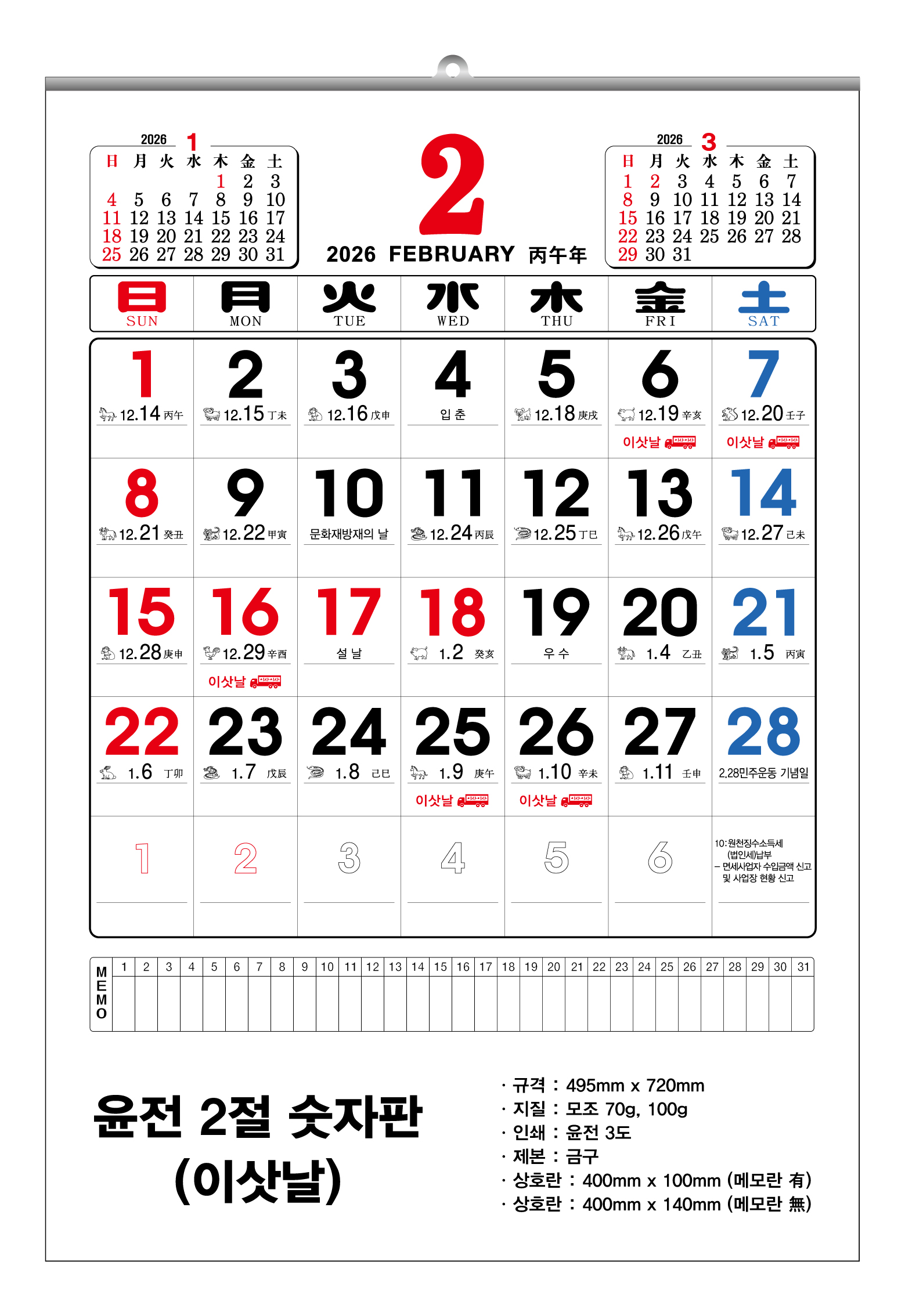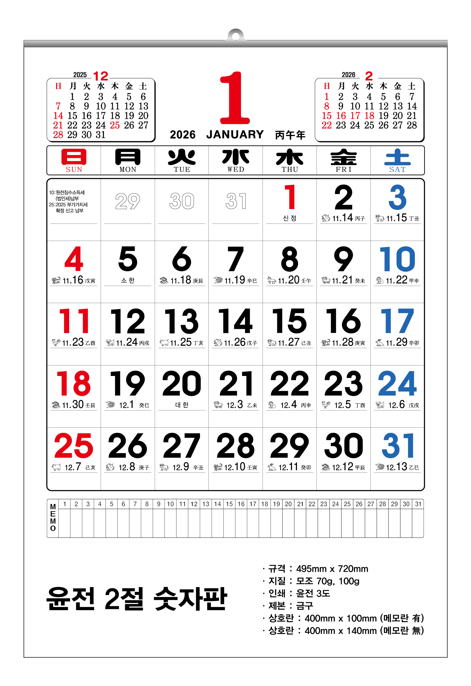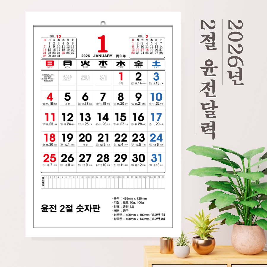 2026³â À±Àü Ưº°2Àý ¼ýÀÚÆÇ ´Þ·Â 455x675mm (70g/100g) 1P